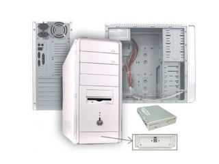 Este documento describe los componentes básicos de una computadora personal (PC), incluyendo el gabinete, microprocesador, placa madre, memoria RAM, disco duro, placa de video, lectoras y grabadoras, mouse, teclado, monitor, puertos USB e impresoras. También explica los diferentes tipos de gabinetes, microprocesadores, memorias RAM, discos duros, monitores, mouse, teclados e impresoras y las ventajas y desventajas de las PC de marca frente a las genéricas y las notebooks frente