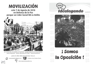 El documento convoca a una movilización el 7 de agosto en defensa de la paz y en contra de los asesinatos de líderes sociales. Critica al nuevo gobierno por designar a reconocidos corruptos en cargos públicos. Llama a la gente a manifestarse para oponerse al presidente Duque y notificarle que el pueblo no se rinde.