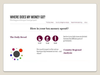 Este documento presenta una introducción al periodismo de bases de datos. Explica brevemente la tendencia hacia datos abiertos y cómo esto permite un periodismo más documentado e impactante. También resume las principales etapas del proceso de periodismo de datos, incluida la búsqueda, extracción, refinamiento y visualización de datos para comunicar información de manera efectiva.