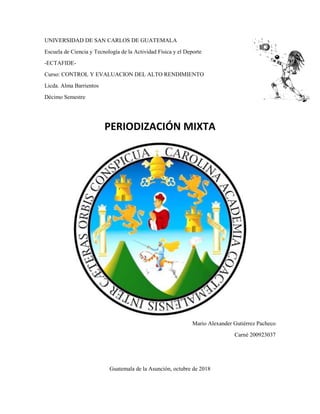 El documento explora la periodización mixta en el entrenamiento de fútbol, que combina la periodización en bloques y la periodización táctica para mejorar el rendimiento de los jugadores. A través de una metodología que se adapta a la evolución del deporte y las exigencias competitivas, se presentan conceptos clave como mesociclos y la importancia de principios metodológicos en la planificación. Además, se destacan etapas específicas, como el inicio de temporada y competencia, donde se aplican distintas metodologías de entrenamiento según el contexto del equipo.