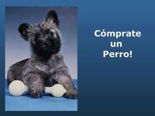 El documento recomienda comprar un perro si se busca a alguien fiel, alegre y servicial que haga cualquier cosa para complacer, proteja el hogar sin poner en peligro a otros, y ofrezca amor incondicional. Por el contrario, sugiere comprar un gato si se prefiere a una mascota más independiente que ignore los llamados y solo regrese a casa para comer y dormir.
