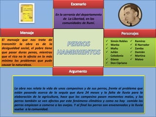 El documento presenta información sobre tres destacados escritores peruanos del siglo XX que abordaron el tema del indigenismo en sus obras: Ciro Alegría, José María Arguedas y César Vallejo. Se proporcionan detalles biográficos de cada autor y una lista de sus obras más representativas, que reflejan las condiciones de vida de los campesinos e indígenas peruanos.