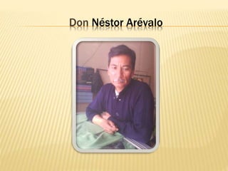 El documento habla sobre la historia de Néstor Arévalo, un emprendedor que tuvo pocos recursos económicos en el pasado pero que pudo superarse y establecer su propio negocio de tejidos llamado "Tejidos y Diseño Punto Néstor's" gracias a préstamos bancarios. Ahora es dueño de su propio negocio y sirve como ejemplo de una persona emprendedora que se fija metas y las cumple.