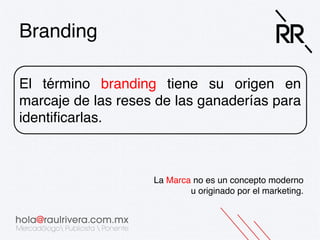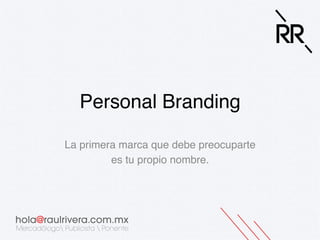 El documento trata sobre el concepto de personal branding. Explica que la marca personal es la primera marca con la que uno debe preocuparse y que el branding tiene su origen en marcar ganado para identificarlo. Además, define el personal branding como la aplicación del marketing directamente a la marca personal con el objetivo de construir o mejorar la propia imagen para alcanzar metas específicas. Finalmente, enfatiza la importancia de identificar las propias pasiones, convertirse en un experto en un tema y ser auténtico como parte del proceso de personal branding.