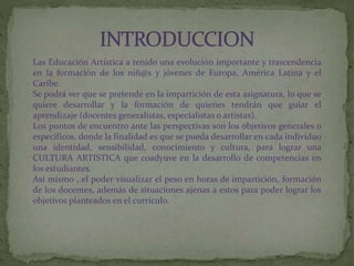 La educación artística se considera obligatoria en primaria y secundaria, aunque el tiempo destinado es limitado. Generalmente es impartida por maestros generalistas en primaria y profesores especializados en secundaria. Sin embargo, existen desacuerdos sobre cómo abordarla de manera efectiva y cómo evaluarla para fomentar la creatividad de los estudiantes.