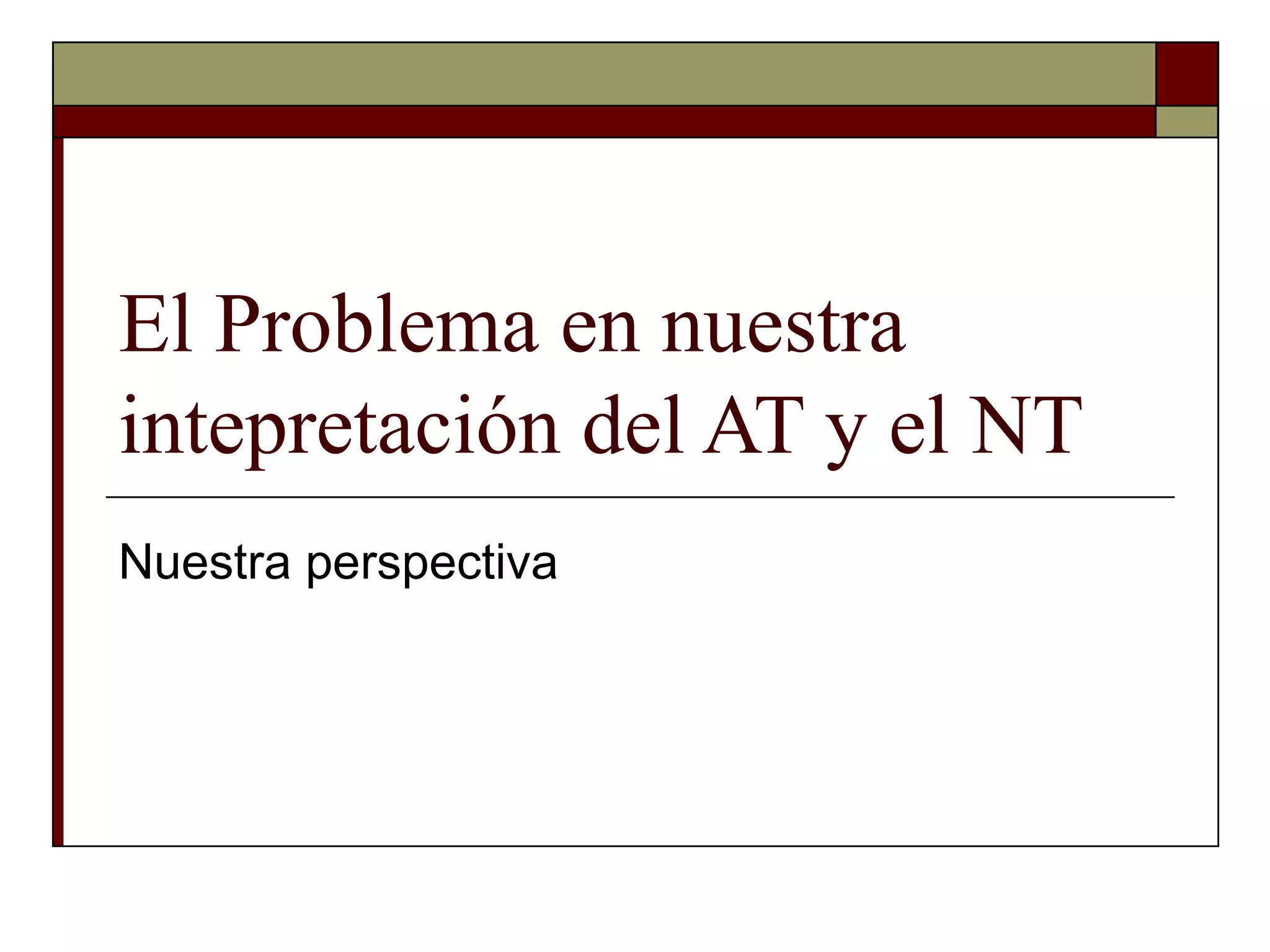 El documento argumenta que la perspectiva hebrea es la correcta para interpretar tanto el Antiguo Testamento como el Nuevo Testamento. Sostiene que una perspectiva griega ha causado mucha confusión y diversidad de interpretaciones no bíblicas en el cristianismo. Recomienda quitarse los "lentes griegos" y ponerse "lentes hebreos" para leer y estudiar la Biblia desde una perspectiva histórica, cultural y lingüística hebrea.