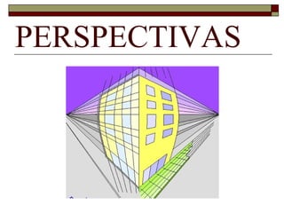 El documento describe dos tipos de perspectiva para la representación 3D en un plano: la perspectiva isométrica, que se genera a partir de tres ejes inclinados a 30 grados, y la perspectiva de caballero, que se genera a partir de un eje vertical, uno horizontal y otro inclinado a 45 grados, debiendo dibujarse a la mitad las medidas en el eje inclinado.