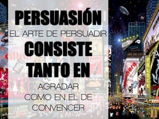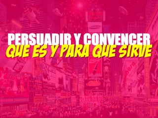Este documento habla sobre las formas de persuadir y convencer a otras personas. Explica que la persuasión trata de crear una realidad en la mente de las personas, mientras que la convención se enfoca en demostrar los beneficios de algo para que la persona lo adopte. También describe características como la credibilidad, el carisma y la similitud que hacen que alguien sea más persuasivo, así como diferentes tipos de persuasión como la sistemática, heurística y afectiva. Por último, menciona el rumor y el chisme como