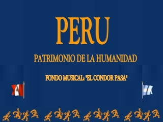 El documento proporciona información sobre varios lugares y sitios declarados Patrimonio de la Humanidad por la UNESCO en Perú, incluyendo la ciudad de Cusco, Machu Picchu, el Parque Nacional Huascarán, Chan Chan, el Parque Nacional del Manu, el Centro Histórico de Lima, el Parque Nacional del Río Abiseo, las Líneas de Nazca y el Centro Histórico de Arequipa.