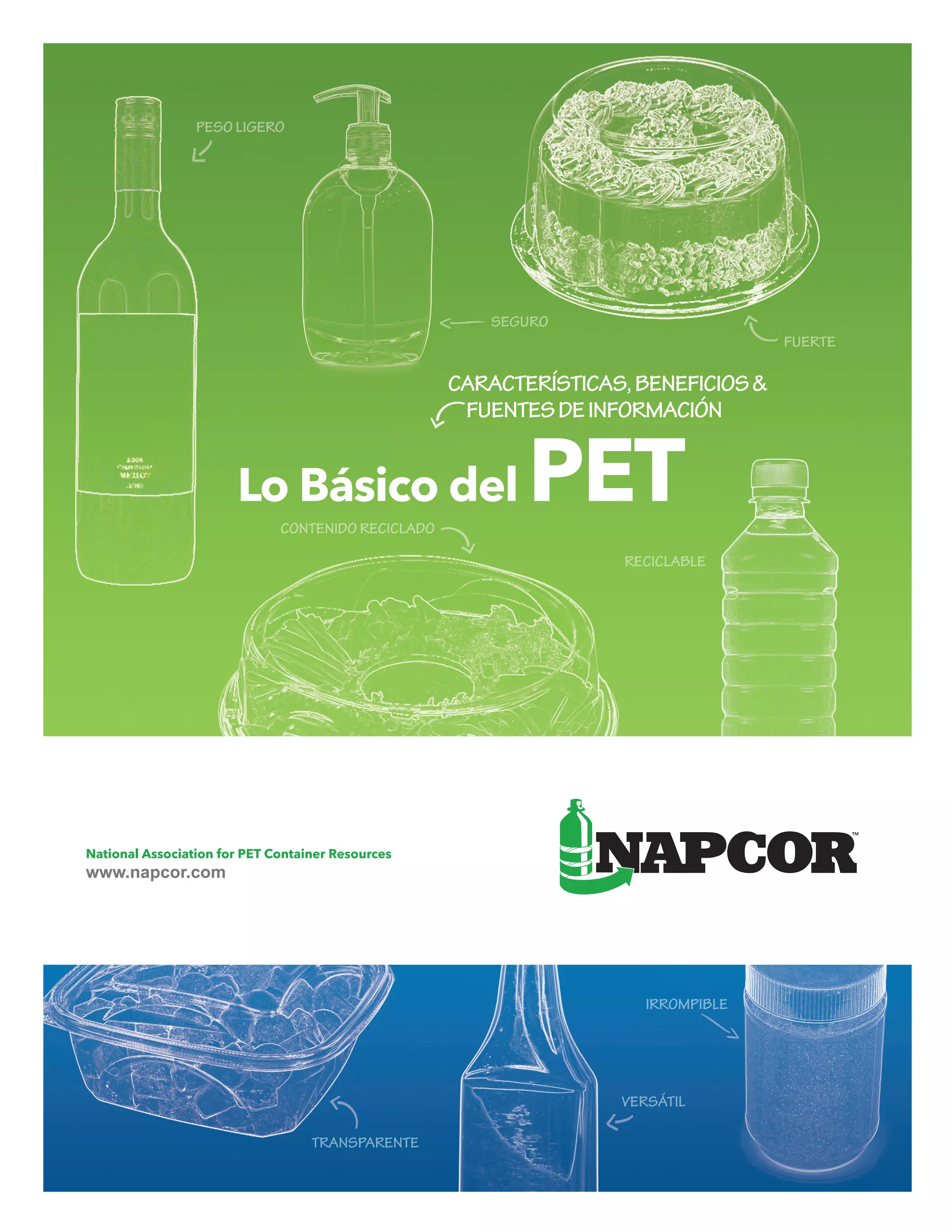 Este documento resume las características y beneficios del PET como material de empaque. El PET es un material ligero, fuerte, seguro, transparente e irrompible que se puede reciclar múltiples veces. Ofrece barreras inherentes que protegen el contenido y puede ser fabricado de manera versátil para diferentes aplicaciones de empaque. El PET también tiene ventajas ambientales como menor uso de energía y emisiones en comparación con otros materiales.