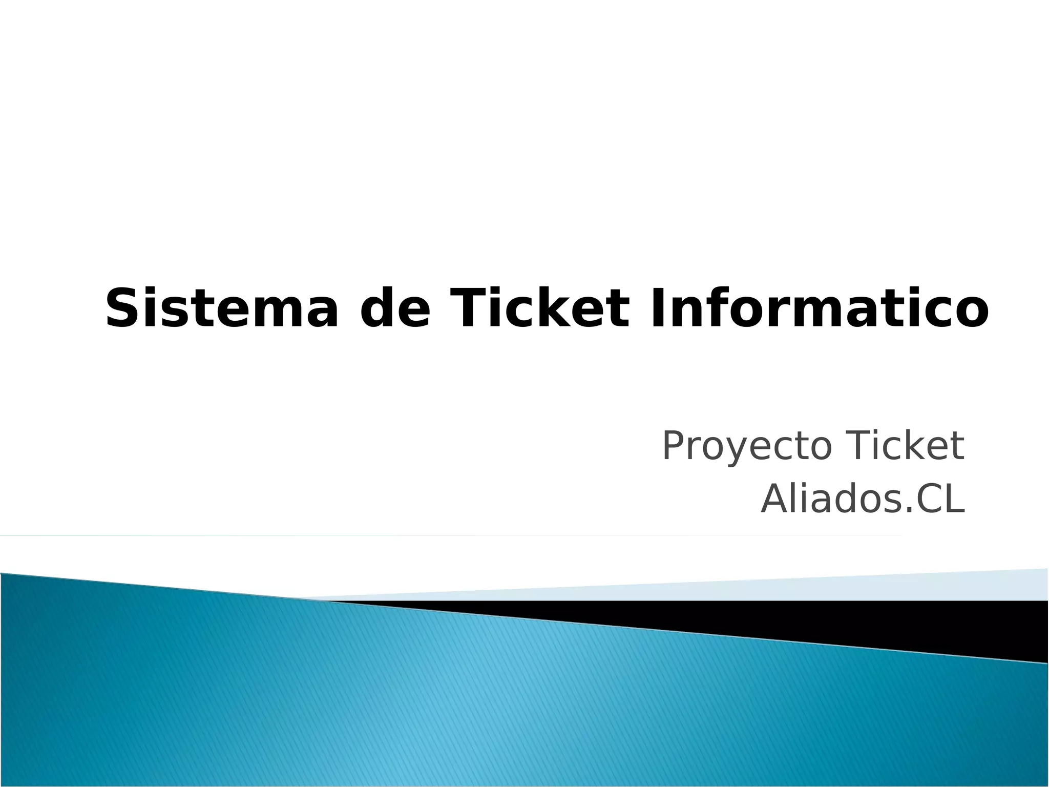 El documento describe un sistema de ticket informático para organizar mejor el soporte técnico mediante una aplicación web. La aplicación permitirá a los usuarios crear tickets desde cualquier computador, darle seguimiento al progreso y cerrarlos una vez resuelto el problema. El sistema usará bases de datos, diseño web, programación y pruebas para automatizar el proceso de soporte técnico.