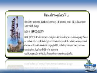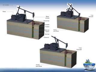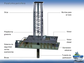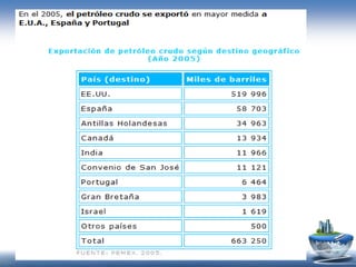El documento describe la composición y propiedades del petróleo crudo, el proceso de su formación, extracción y clasificación. Explica que el petróleo es una mezcla compleja de hidrocarburos y pequeñas cantidades de otros elementos que se forma a partir de restos orgánicos enterrados bajo tierra por millones de años. También cubre los tipos de petróleo, la industria petroquímica y sus usos comerciales.