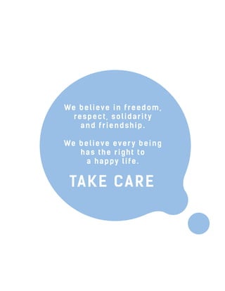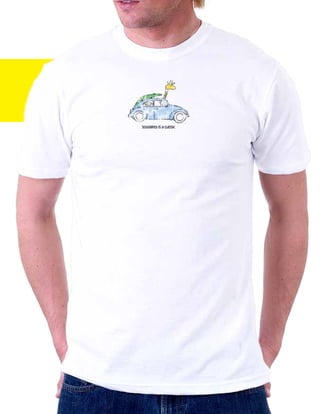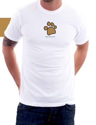 Este documento presenta el catálogo de una colección de ropa y accesorios de la marca Pets & Humans. Incluye camisetas y tazas con diseños que promueven el respeto a los animales y la naturaleza, en diferentes colores y tallas. Se ofrecen descuentos por tiempo limitado y se especifica que los diseños son únicos y no se volverán a producir.