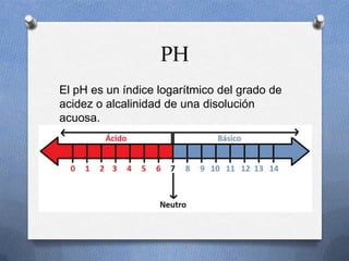 El documento describe las propiedades del pH de las lágrimas humanas. Explica que el pH de las lágrimas no estimuladas es aproximadamente 7.4 y puede variar entre 6.8 y 7.6 dependiendo de si el ojo está cerrado u abierto. También contiene información sobre los diversos componentes de las lágrimas como lípidos, proteínas, enzimas y electrolitos.