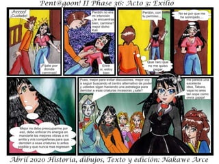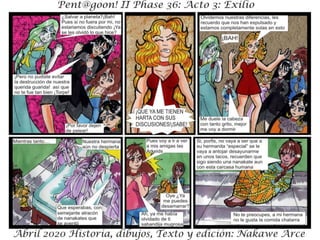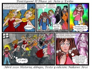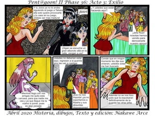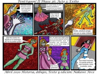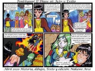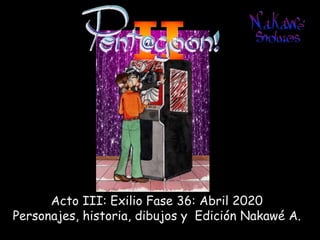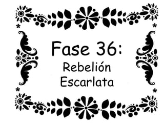 El documento presenta 'Acto III: Exilio Fase 36' como parte de 'Fase 36: Rebelión Escarlata'. Se menciona que los personajes y situaciones son ficticios, sin relación con la realidad. El texto sugiere una continuación de la historia.