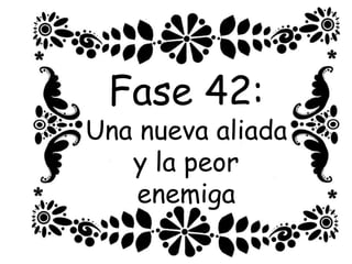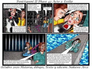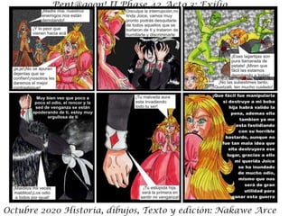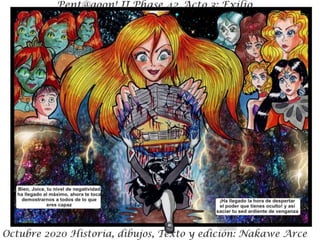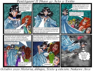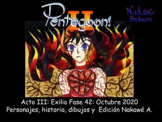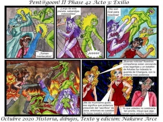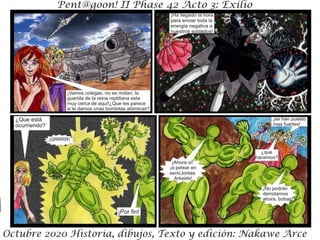 El resumen del documento en 3 oraciones o menos es: El documento presenta un resumen de la trama de la Fase 42 de Octubre de 2020, donde los personajes se enfrentan a una nueva aliada pero también a su peor enemiga. Incluye una advertencia de que los detalles de la historia son ficticios y cualquier similitud con la realidad es coincidencia. El documento es parte de un acto III de una historia en curso titulada "Exilio".