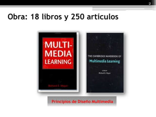 Richard E. Mayer es un destacado psicólogo educativo que se ha desempeñado como profesor en varias universidades. Su obra se ha centrado en el aprendizaje multimedia y la solución de problemas a través de la intersección entre la cognición, la instrucción y la tecnología. Ha publicado numerosos libros y artículos sobre sus modelos de aprendizaje multimedia y sus principios de diseño multimedia.