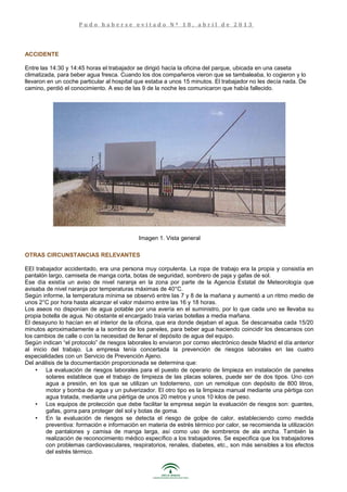 Un trabajador murió de golpe de calor mientras limpiaba paneles solares en condiciones extremadamente calurosas, sin las medidas de seguridad adecuadas. El accidente pudo haberse evitado planificando mejor el trabajo o eligiendo un método de limpieza menos exigente físicamente.