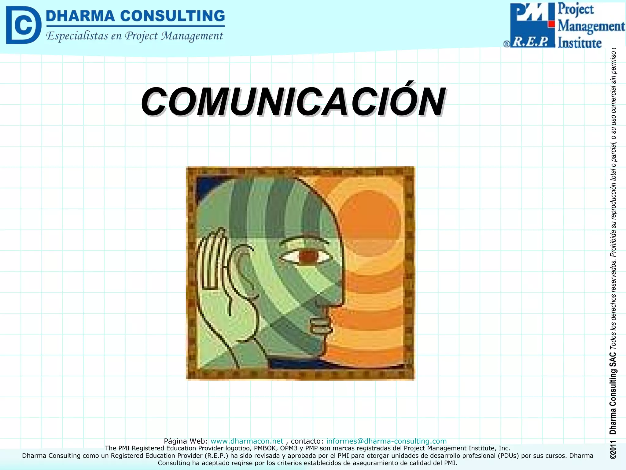 El documento describe la importancia de la comunicación en la gestión de proyectos. Explica que la comunicación efectiva es crucial para el éxito del proyecto y que involucra comunicaciones formales e informales a diferentes niveles. También presenta conceptos sobre la comunicación interpersonal, verbal, no verbal y escrita, así como canales y estilos de comunicación en el ciclo de vida del proyecto.