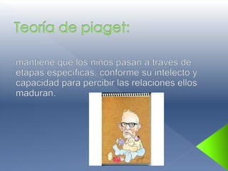 Jean Piaget fue un psicólogo suizo que nació en 1896 y murió en 1980. Estudió el desarrollo cognitivo infantil y propuso que los niños pasan por cuatro etapas: la sensomotora, preoperacional, de operaciones concretas y de operaciones formales. Cada etapa se caracteriza por avances en la capacidad de razonamiento y resolución de problemas.