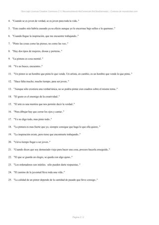 Pablo Picasso fue un artista español nacido en 1881 que se trasladó a París en 1904, donde desarrolló el cubismo junto a Georges Braque. Picasso experimentó con diferentes estilos a lo largo de su carrera, incluyendo el periodo azul, el cubismo analítico y sintético, y el neoclasicismo. Murió en 1973 a la edad de 91 años, dejando un legado como uno de los artistas más influyentes del siglo XX.