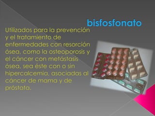 Este documento describe un nuevo anticuerpo monoclonal que se administrará mediante un solo pinchazo subcutáneo cada seis meses para tratar la osteoporosis menopáusica, reduciendo el riesgo de fracturas de cadera en un 60% al retrasar la desmineralización ósea.