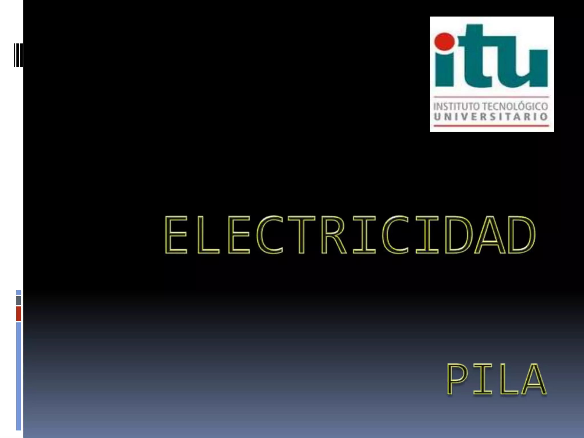 Este documento resume la historia, funcionamiento, tipos y efectos ambientales de las pilas. Explica que la primera pila fue inventada por Volta en 1800 y consistía en discos apilados de zinc y cobre separados por salmuera. Luego describe los principales tipos de pilas como las salinas, alcalinas, de botón, verdes y recargables de níquel-cadmio y plomo-ácido. Finalmente, advierte sobre los posibles efectos contaminantes de los metales en las pilas cuando son desechadas incorrectamente.