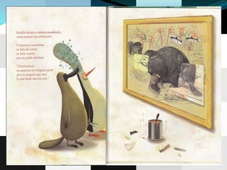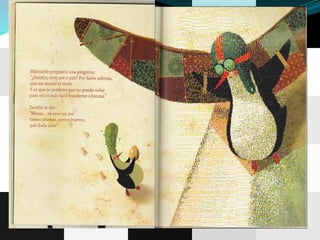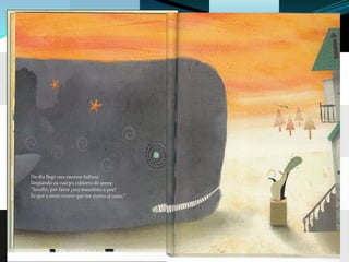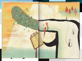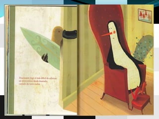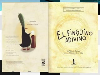 El resumen del documento en 3 oraciones es: El cuento se llamaba "El pingüino adivino" y trataba de Serafín, un pingüino estudioso y adivino que usaba una bola de cristal para adivinar. Otras preguntas eran sobre si un león es mamífero, con qué se alimenta una ballena a sus hijos, y la respuesta de Serafín a un ornitorrinco sobre ser la más linda obra de arte. El documento termina con una actividad de recortar etiquetas para hacer la portada.