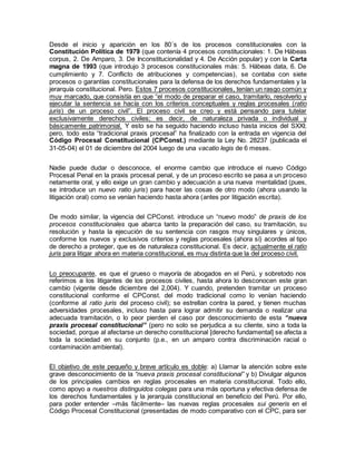 2) El Código Procesal Constitucional de 2004 introdujo reglas procesales únicas para los procesos constitucionales.