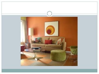 Este documento ofrece consejos para elegir colores al pintar paredes. Recomienda usar colores más atrevidos que en el pasado y sugiere usar colores cálidos como rojo o naranja en dormitorios infantiles o salones. También aconseja combinar dos colores en una pared o usar tonos neutros como beige en la mayoría de habitaciones. El documento concluye indicando que lo más importante es elegir colores que transmitan emociones positivas.