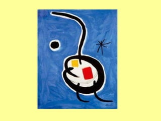 El documento habla brevemente sobre el artista Joan Miró y algunas de sus obras clave como "Despertando al Amanecer" de 1944 y "Làmina Sense Nom". También menciona títulos como "Garden", "Números I Constel·lations" y "Vol d'Ocells".