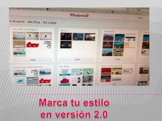 El documento proporciona directrices sobre el uso apropiado de Pinterest. Indica que Pinterest se basa en la contribución colectiva para asegurar que cada pin sea útil para los demás. Pide a los usuarios que muestren respeto en sus comentarios y que citen sus fuentes. También pide informar sobre cualquier contenido ofensivo y sugiere formas de mejorar la plataforma.