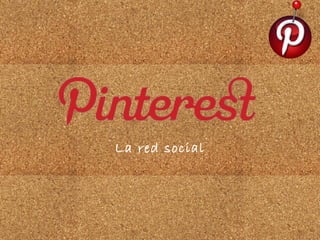 Pinterest es una red social para compartir imágenes lanzada en 2010. Los usuarios pueden crear tableros temáticos llamados "pinboards" para organizar y compartir imágenes llamadas "pins". El éxito de Pinterest se debe a que permite compartir contenido de manera visual y fácil, lo que ha llevado a su rápido crecimiento.
