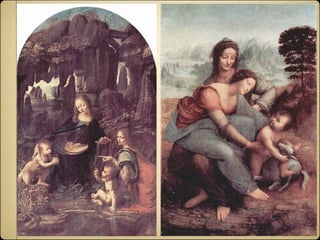 El documento describe las características generales de la pintura del período conocido como Cinquecento en Italia. Se introdujeron nuevos materiales como el óleo y el lienzo, y técnicas como el claroscuro y el sfumatto permitieron una mayor representación del volumen y la luz. Los principales estilos fueron el romano-florentino de artistas como Leonardo, Miguel Ángel y Rafael, y el veneciano de Tiziano y Veronés. Se resaltan las innovaciones y características de importantes artistas del período.