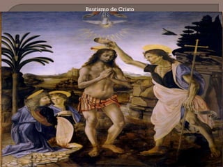 Este documento contiene una lista de seis obras de arte famosas creadas por artistas renacentistas como Leonardo da Vinci y Rafael, incluyendo El bautismo de Cristo, La Anunciación, La dama del armiño, La última cena, Leda y el cisne y la Mona Lisa.