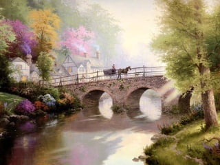 Thomas Kinkade nació en 1958 en Sacramento, California. Era un pintor estadounidense conocido por sus pinturas paisajísticas idealizadas. Creó imágenes de pueblos idílicos y paisajes bucólicos.