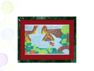 El documento habla sobre derechos de autor y producciones artísticas como pinturas, poesía, cuentos y canto. Agradece la participación en los concursos relacionados con estas categorías artísticas.