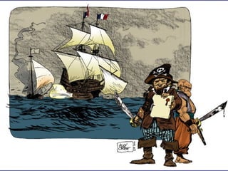 Este documento habla sobre la vida de los piratas en el mar. Menciona a varios piratas famosos como Francis Drake de Inglaterra y Dragut de Turquía que saquearon muchos barcos y tesoros. También menciona la canción popular "La canción del pirata" que celebra la vida libre y aventurera de los piratas en el mar. Finalmente, se pregunta si habría mujeres piratas en esa época.