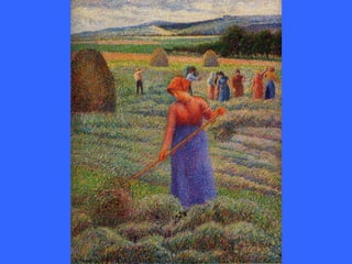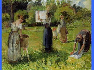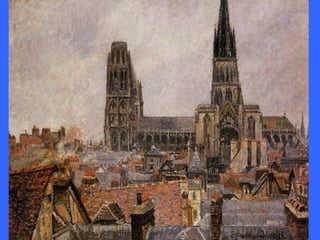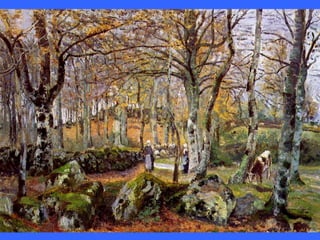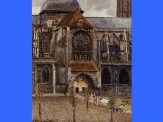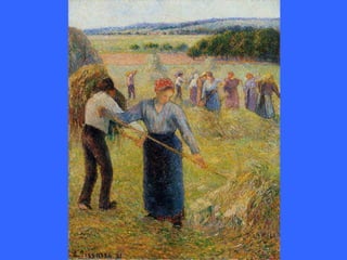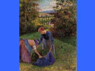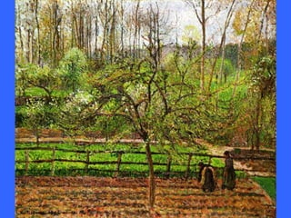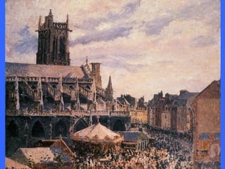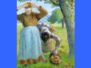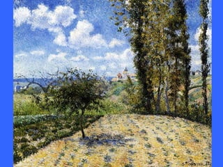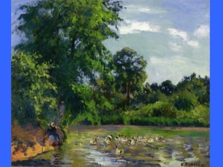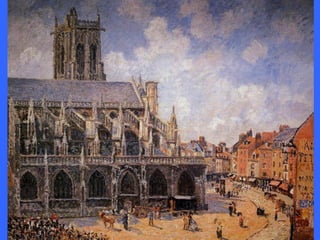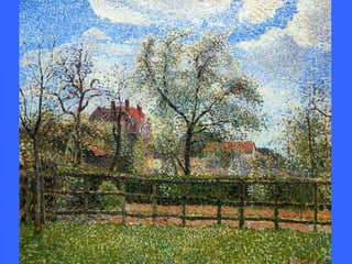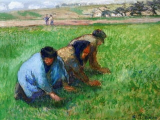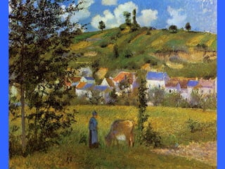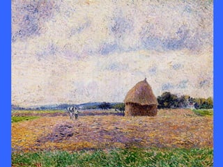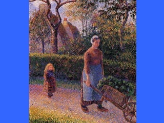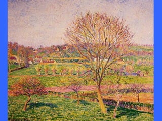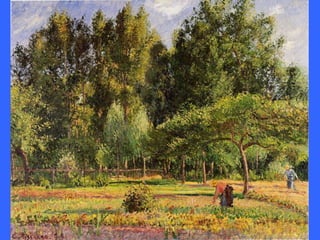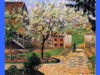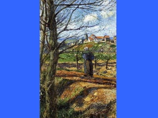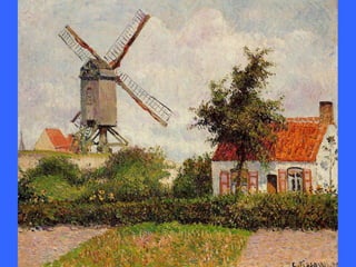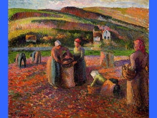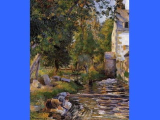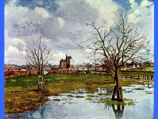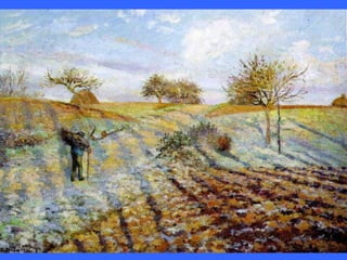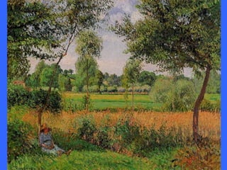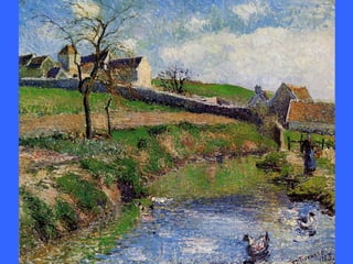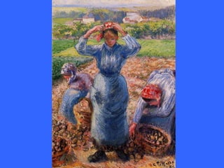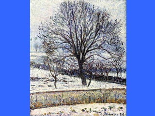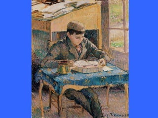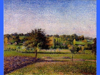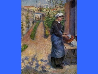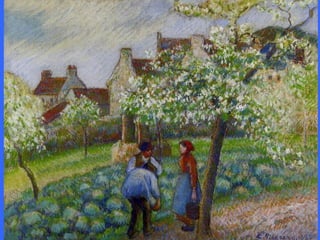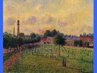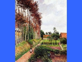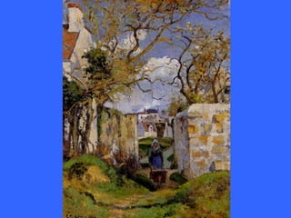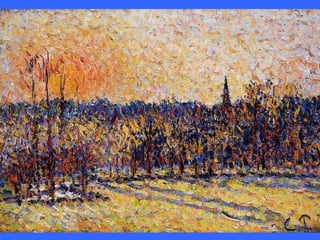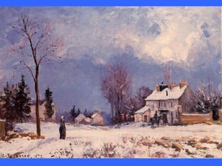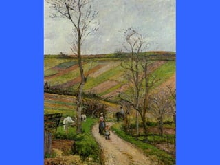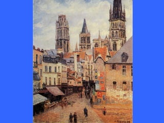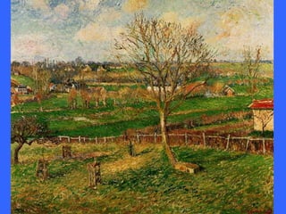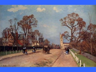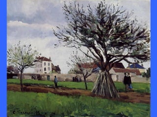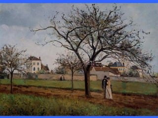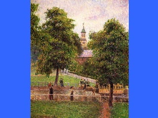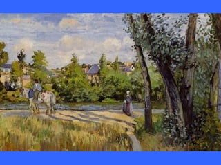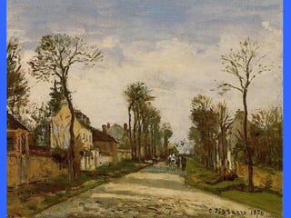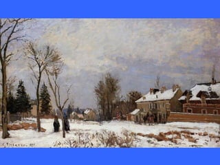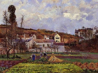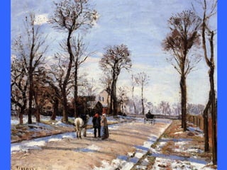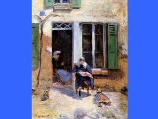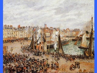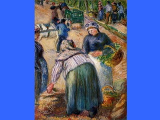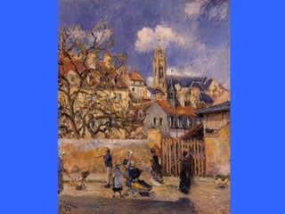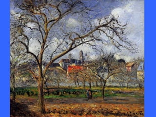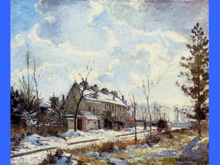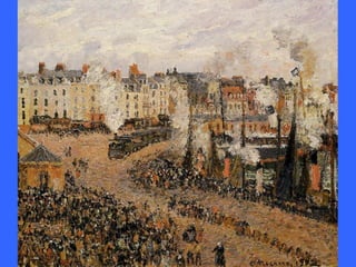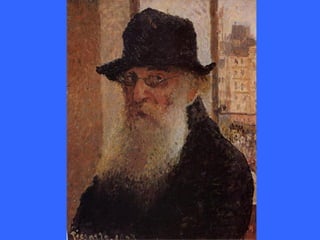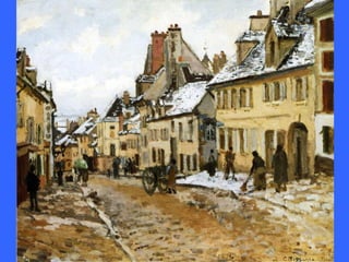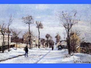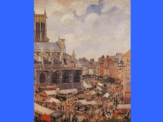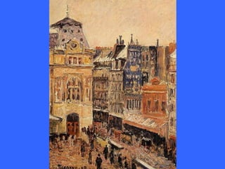 Camille Pissarro (1830-1903) fue un pintor francés pionero del impresionismo. Pissarro experimentó con la pintura al aire libre y capturó escenas cotidianas de la vida urbana y rural con pinceladas sueltas y colores luminosos. Su cuadro Boulevard de Montmartre muestra una calle de París llena de gente y vehículos, iluminada por la luz del sol, capturando el movimiento y la atmósfera de la vida moderna.