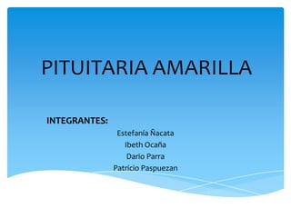 La pituitaria amarilla es una membrana mucosa situada en la parte superior de las fosas nasales que contiene células nerviosas olfativas y receptores que permiten el sentido del olfato. Está constituida por células con cilios microscópicos recubiertos de receptores sensibles a moléculas de olor y glándulas que producen moco para mantener húmedo el epitelio.