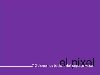 El pixel es uno de los dos elementos básicos del lenguaje visual. Consiste en los puntos individuales que forman una imagen digital y determinan su resolución y nivel de detalle.