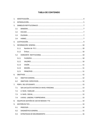 Este documento presenta el plan de gestión de uso de medios y TIC de la Institución Educativa Técnica Empresarial Maximiliano Neira Lamus. El plan describe la identificación y objetivos de la institución, su equipo de gestión, estrategias para mejorar el uso de TIC, y planes de acción, divulgación y evaluación para implementar las TIC en la institución.