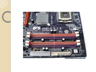 La placa base conecta todos los componentes del ordenador. Contiene el chipset que controla los recursos, la memoria BIOS, y ranuras para tarjetas de expansión. Proporciona conectores para el procesador, memoria RAM, y entrada/salida como USB, audio y video.