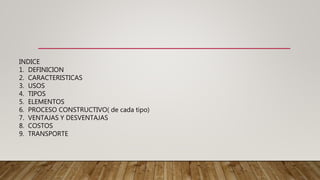 Este documento describe las placas colaborantes, incluyendo su definición como un sistema constructivo de losas de hormigón compuesto por una chapa de acero nervada y hormigón. Explica los tipos, características, usos, proceso de instalación y ventajas de las placas colaborantes, como el ahorro de tiempo y costos en comparación con los encofrados tradicionales. También resume los diferentes elementos de las placas colaborantes y el proceso de su instalación y vaciado de hormigón.