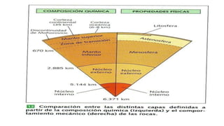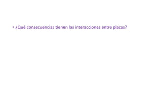 La Tierra está compuesta de varias capas y la corteza terrestre está fragmentada en placas tectónicas rígidas que se mueven continuamente, interactuando unas con otras de tres formas principales: en bordes divergentes se separan formando dorsales oceánicas, en bordes convergentes una placa subduce por debajo de otra en zonas de subducción, y en bordes transformantes se deslizan lateralmente a lo largo de fallas.