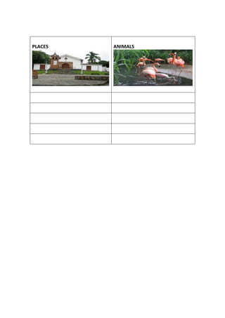 CUADRO PARA COMPLETAR CON LOS NOMBRES DE LUGARES Y ANIMALES