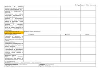 El documento presenta un plan de aprendizaje basado en proyectos comunitarios, dirigido por el Dr. Hugo Alejandro Chávez Buenrostro. Detalla las fases de planeación, acción e intervención, con estrategias para abordar problemas reales en contextos escolares y comunitarios. Incluye un cronograma de actividades, técnicas de evaluación y referencias bibliográficas para su implementación.