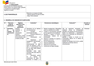 El documento presenta el plan curricular anual para el área de Administración de Sistemas y la asignatura de Redes de Área Local en tercero de bachillerato. Incluye los objetivos generales del área y el curso, la carga horaria, las unidades de planificación con sus objetivos, contenidos, metodologías y evaluación, así como la implantación y administración de redes de área local. El plan contiene 6 unidades que abarcan temas como sistemas de comunicación, aspectos físicos de transmisión de datos, arquitecturas de