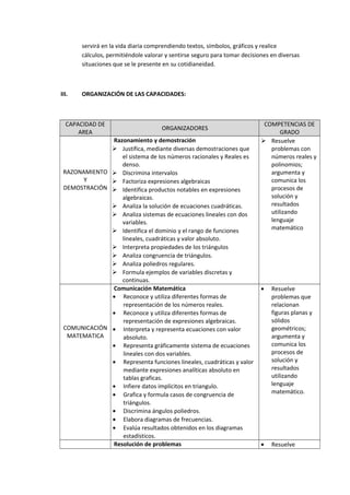 Este documento presenta el programa curricular anual de matemática para el tercer grado de secundaria de la institución educativa Manuel Gonzáles Prada. El programa describe los objetivos de desarrollar las capacidades de razonamiento, comunicación matemática y resolución de problemas a través de temas como números reales, expresiones algebraicas, estadística y geometría. El programa también incluye la organización de unidades didácticas, recursos, metodología de enseñanza y calendario de evaluaciones.