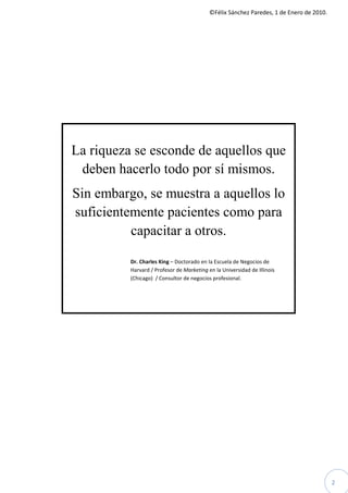 Este documento proporciona información sobre varios temas relacionados con la gestión empresarial como la formación continua de empleados, la calidad, la organización horizontal y el trabajo en equipo. El autor argumenta que estos elementos son importantes para satisfacer las necesidades de los clientes y lograr los objetivos de la empresa.